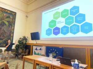 Přehled výstupů projektu, zahrnující například případové studie, mapové nástroje, film Hodnoty přírody, připravovanou knihu či Metodiku pro pravidelné sledování ekosystémových služeb, představila Blanka Loučková (Czech Globe). Na důležitost biologických principů a roli biofyzikálního hodnocení v oceňování přírody upozornil příspěvek Jana Frouze (Biologické centrum AV ČR). Jan Daněk pak uvedl různé možnosti praktického využití ekosystémových služeb v české ochraně přírody a popsal také roli a fungování Národní platformy pro ekosystémové služby (NPES).