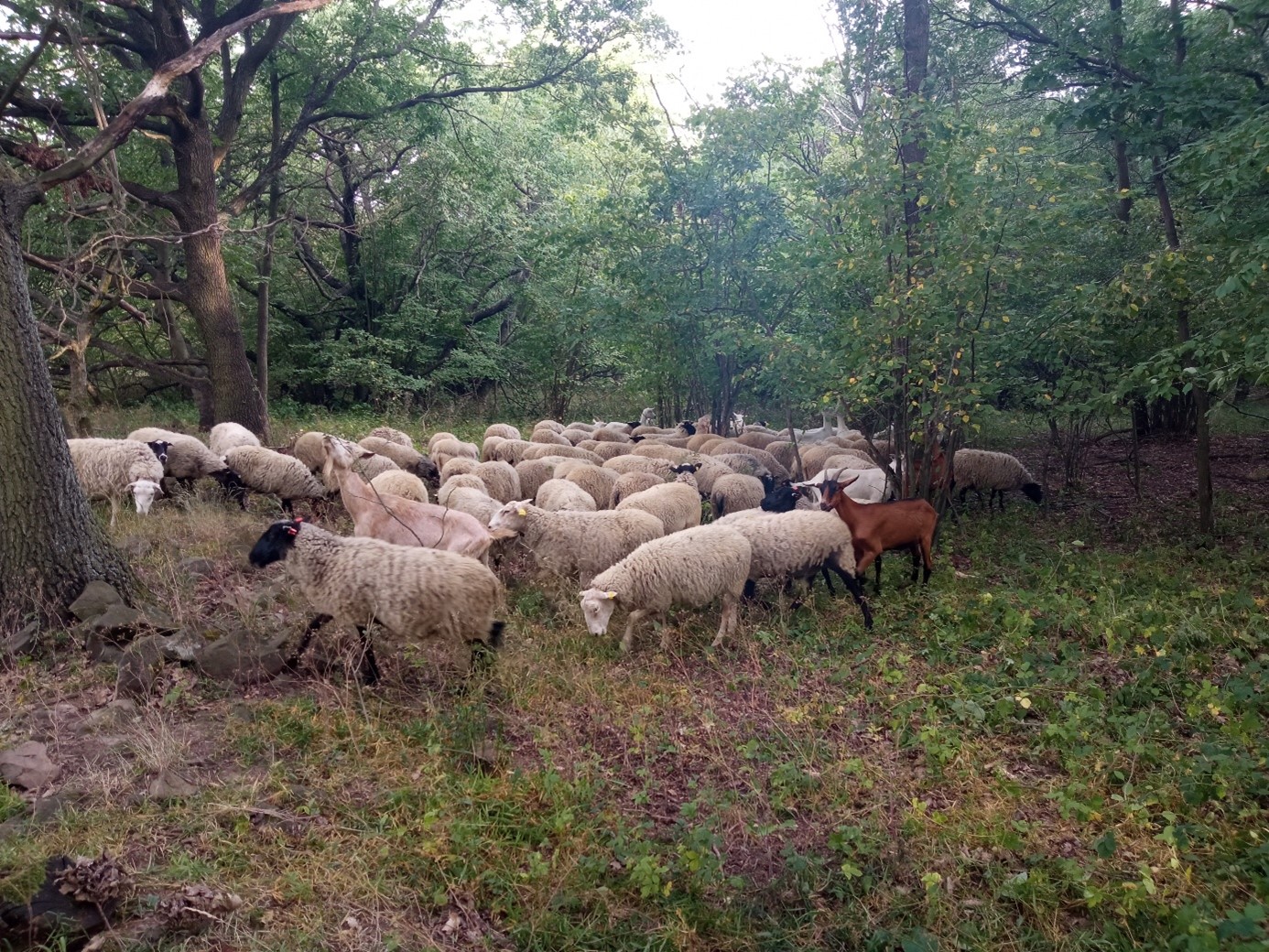 The forest is managed using grazing by sheep and goats, forming a so-called wood pasture. The managed area has been gradually expanding and currently covers approximately 4 hectares. In previous years, the site was prepared through selective felling and veteranisation (creation of tree trunks / snags) of mature trees.